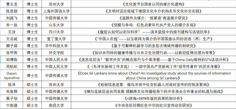 往届参会代表肯尼亚山大学的秦肯助理教授说:“如果你想飞,必须先得流汗,必须刻苦学习,必须对得起自己和导师的努力,成为更好的自己。”本届参会代表中国人民大学博士研究生周航屹在新的历史方位下对“变”与“不变”提出了自己的见解,他说:“‘变’的是新闻传播学科关注的领域和现象,‘不变’的是坚守的价值和理念。”